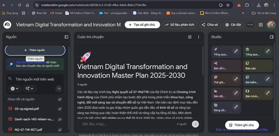 Để rút ngắn thời gian nghiên cứu các tài liệu, chúng ta tạo NotebookLM để chia sẻ các văn bản đã được công bố và cùng nhau nghiên cứu.