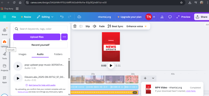 Sau đó upload âm thanh lên